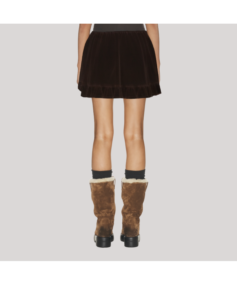 Material and Craftsmanship: The skirt is made of high-quality velvet fabric, soft and smooth to the touch, with a natural and sophisticated sheen, offering a luxurious feel and comfortable against the skin. The stitching is even and delicate, and the skirt has a crisp and stylish silhouette. The velvet material combines warmth and softness, presenting an elegant and cozy winter look.