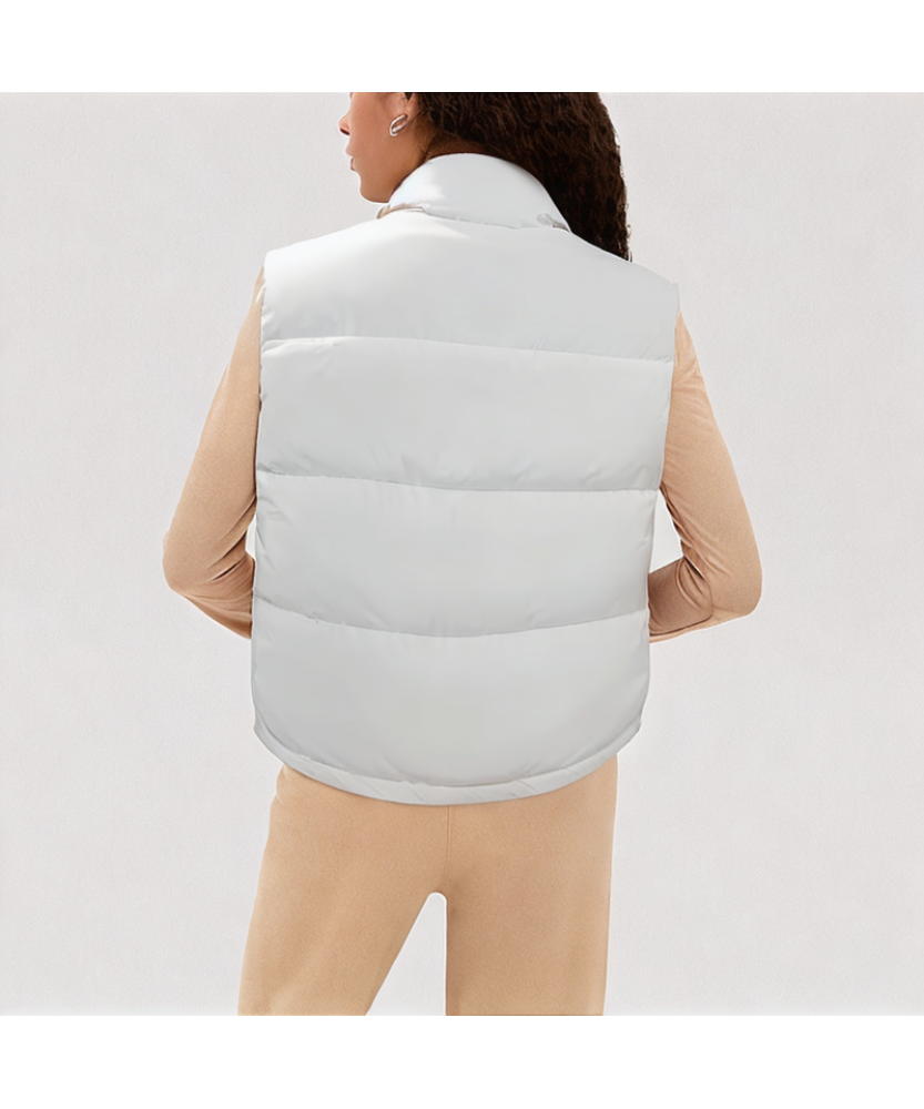 White Duck Down Filling Features: The vest is filled with high-quality white duck down, which is fluffy, lightweight, and provides excellent warmth, locking in body heat even in low temperatures. High down content and excellent loft make this vest both lightweight and warm. The cropped design keeps it sleek and non-bulky, ensuring comfortable and natural wear – an ideal lightweight and warm piece for autumn and winter.