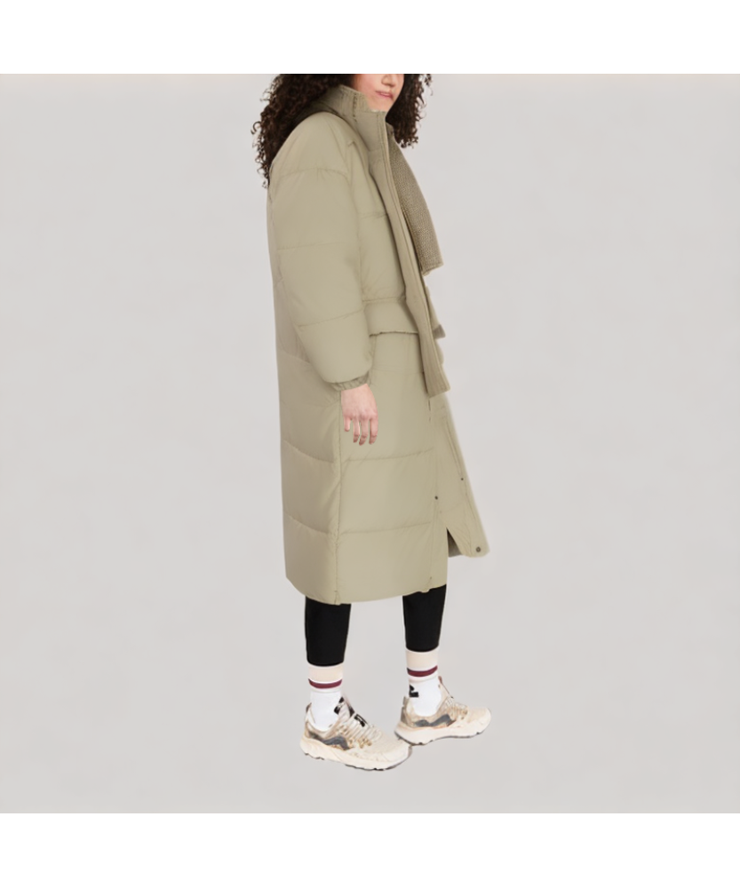 Duck Down Filling Features: Filled with high-quality duck down, this down jacket is fluffy, lightweight, and offers superior warmth. Duck down provides stable heat retention despite its lightweight nature, preventing the long down jacket from appearing bulky. Ample filling and good loft ensure the garment remains full and structured, maintaining a comfortable and close fit even after extended wear.