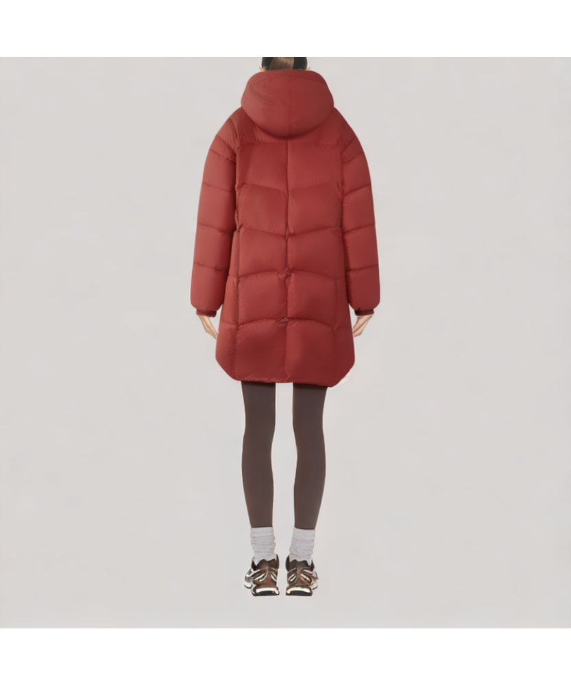 Quilted Design: Evenly quilted seams throughout the garment securely hold the down, reducing cold spots. The quilted structure adds dimension to the garment, maintaining the flattering proportions of the long cut while balancing aesthetics and functionality.