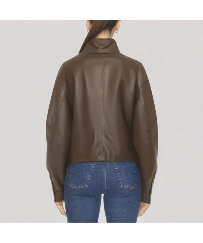 Waist-cinching Design: The jacket features a slightly cinched waist, optimizing body proportions and making the short leather jacket more streamlined and stylish. The cinched waist prevents a bulky look, maintaining a slim fit while providing warmth, enhancing both style and feminine curves.