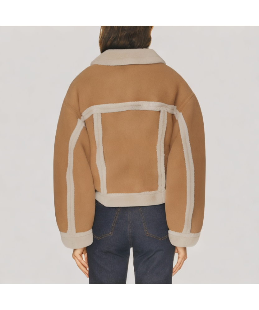 Material and Craftsmanship: This coat features a high-quality wool fabric combined with a lambswool lining, creating a seamless, fur-lined design that offers both warmth and a luxurious feel. The wool fabric is crisp and durable with a soft touch, while the fluffy and delicate lambswool lining provides excellent warmth. The overall stitching is fine and even, the toggle buttons are durable, and the exquisite details add a touch of vintage charm and high-end quality to this short coat.