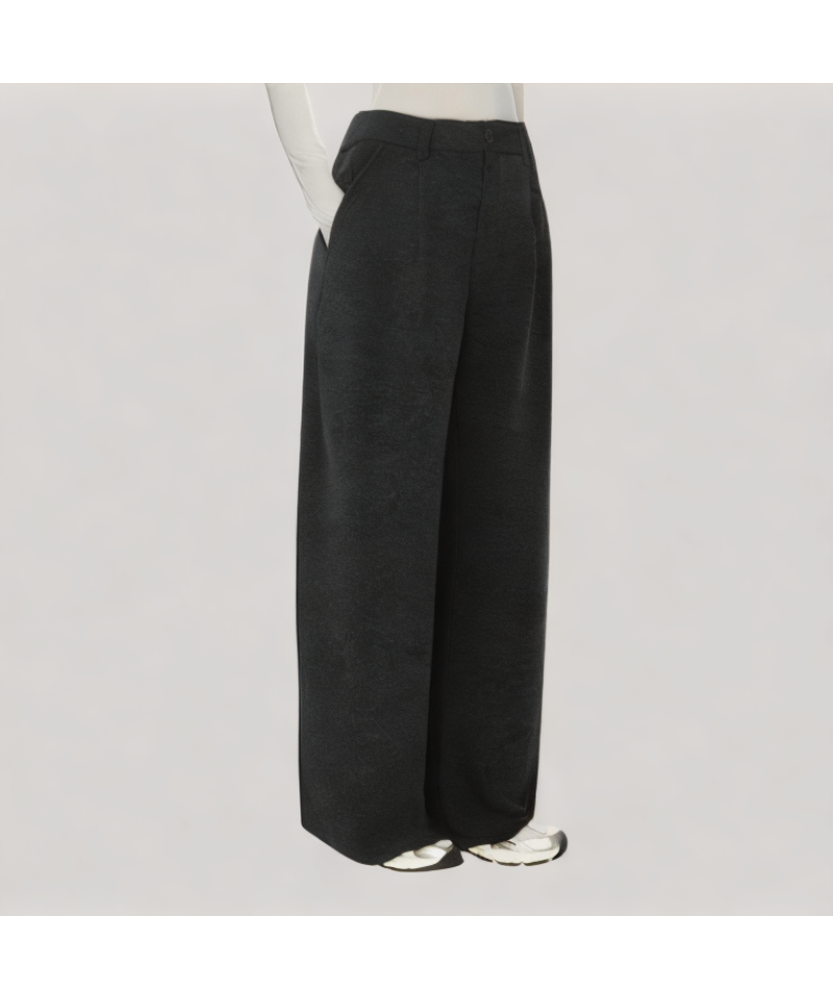Waist and Fit Design: The standard waist design, combined with a zippered closure, makes them easy to put on and take off while fitting the body perfectly. The wide-leg design drapes naturally, creating a smooth leg line and allowing for free movement, balancing comfort and style.