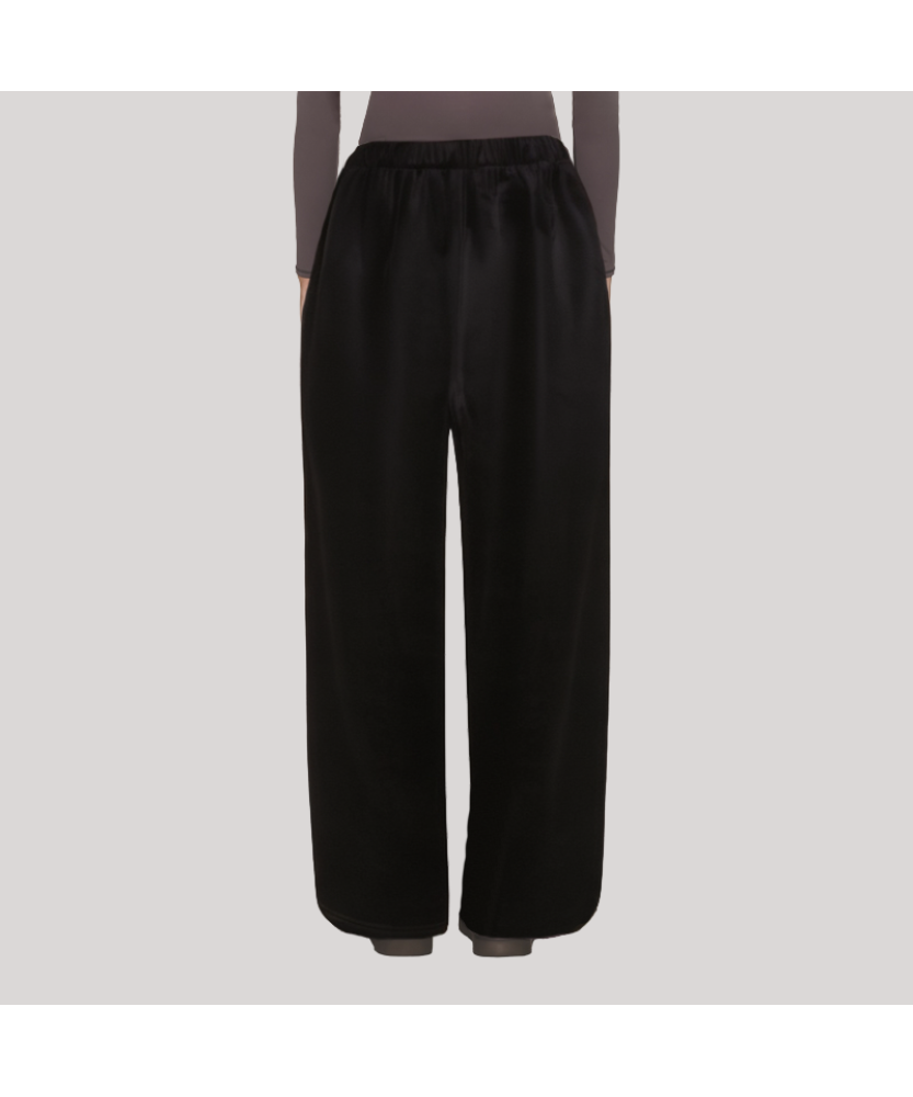 Solid Color Design and Details: The entire pair of pants features a solid black design, simple and versatile, easily matching various tops and outerwear. The sheen of the velvet material adds texture to the solid-color trousers, elevating the overall look to a more sophisticated feel.
