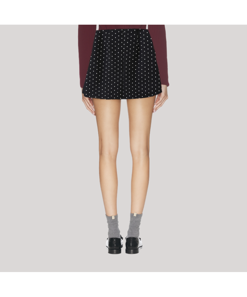 Contrasting Polka Dot Pattern: The skirt features a contrasting polka dot design, adding fun and visual depth to the simple wool fabric, blending retro and modern styles.