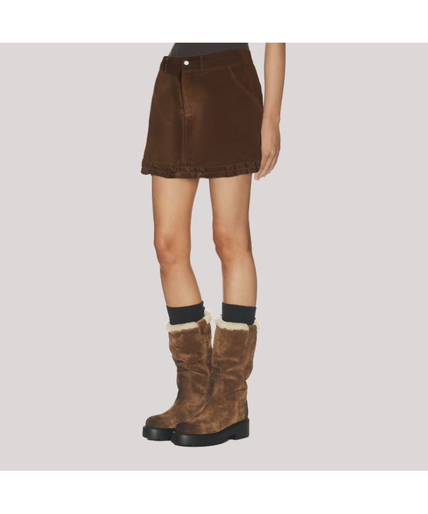 Material and Craftsmanship: The skirt is made of corduroy fabric, which is soft, thick, comfortable to the touch, and textured, offering both warmth and a vintage feel. The fabric is crisp and structured, with fine and even stitching to ensure a natural drape and durability. The smooth lining adheres well to the body, increasing comfort and protecting the skirt from losing its shape.