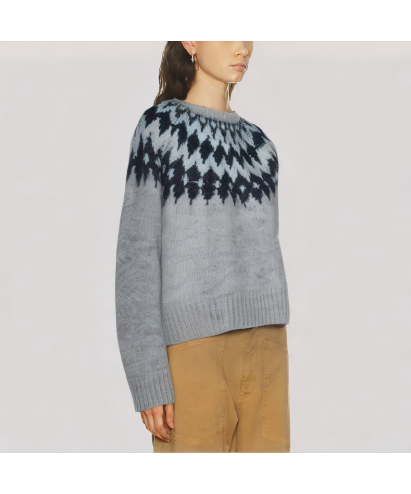 Color-Blocked Jacquard Pattern: The sweater features a color-blocked jacquard design, incorporating rich pattern layers into a solid color base, adding visual highlights. The jacquard craftsmanship is exquisite, with clear and three-dimensional textures, making the sweater more fashionable and textured, breaking the monotony of a basic style.
