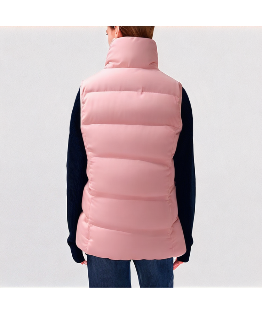 Suitable Occasions and Functionality: This warm down vest is suitable for daily commutes, casual outings, and outdoor activities. The stand-up collar provides neck protection, while white duck down filling ensures warmth in the core area. Zippered pockets and quilted details enhance practicality and the garment's structure. With its simple and versatile style, this is an essential piece for every woman's autumn/winter wardrobe, combining warmth and practicality.