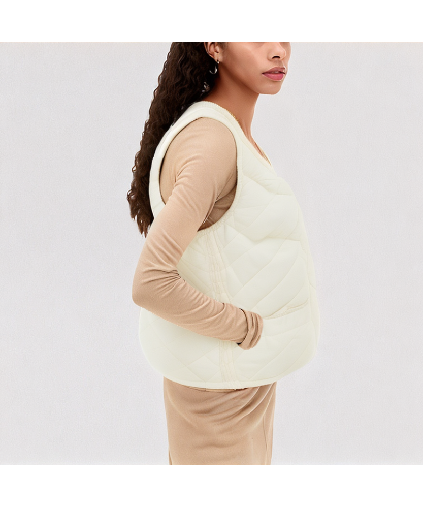 Suitable Occasions and Functionality: This lightweight, slim-fit down vest is suitable for daily commutes, casual outings, and outdoor activities in autumn and winter. The round neck design facilitates layering, the white duck down filling ensures warmth in the core, and the snap button closure is convenient and practical. The overall style is simple and versatile, making it a practical item in every woman's wardrobe that combines lightweight warmth and fashion.