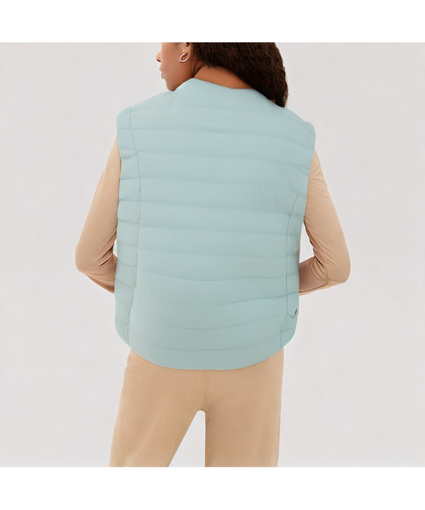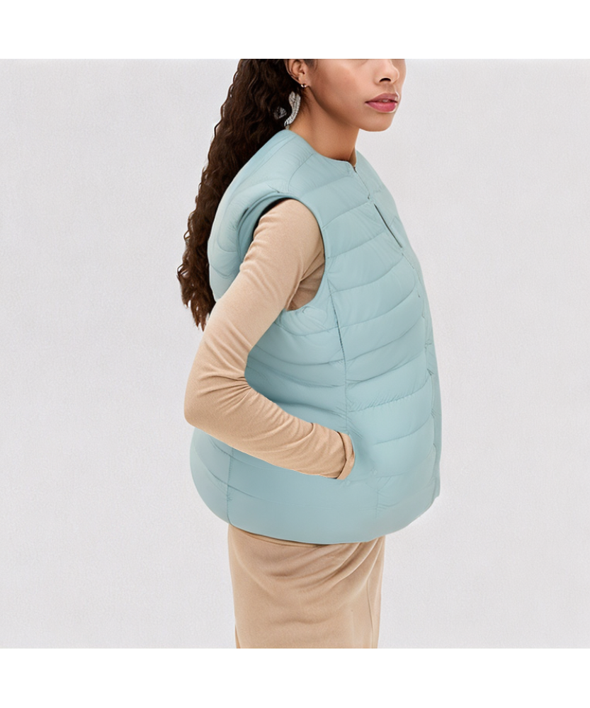 Suitable Occasions and Functionality: This blue down vest is suitable for daily commutes, casual outings, and outdoor activities in autumn and winter. The round neck design facilitates layering, the down filling ensures warmth in the core area, and the quilting and button design enhance practicality and the vest's structured silhouette. With its simple and versatile style, it is an essential item in every woman's wardrobe that combines warmth and practicality.