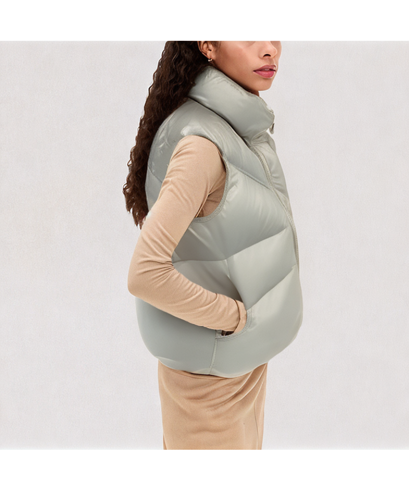 Quilted Design and Details: The entire vest features a uniform quilted structure with neat and fine stitching, effectively securing the down filling and enhancing overall warmth and the garment's structure. The solid color design is simple and versatile, easily matching knitwear, sweatshirts, and trousers, balancing practicality and style.