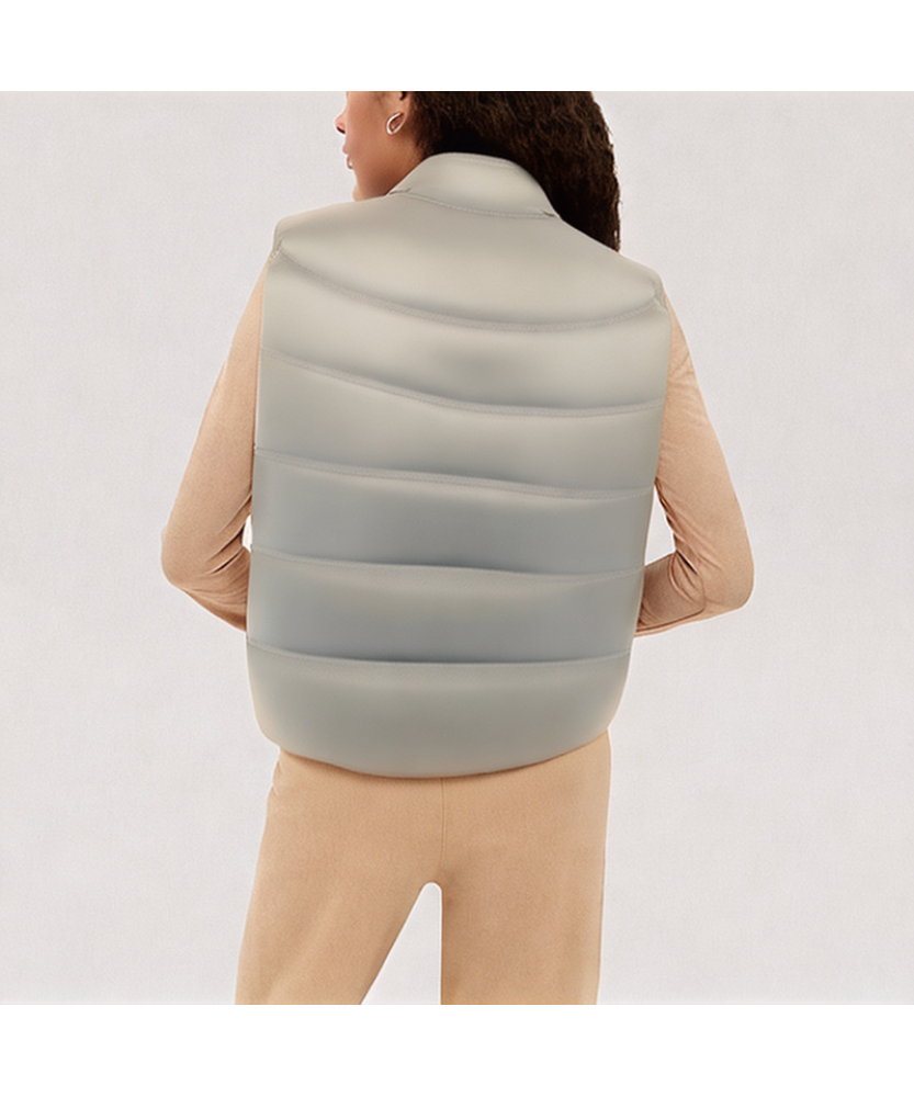 Material and Craftsmanship: This women's down vest is made of high-density windproof fabric, with a crisp yet soft feel. It offers excellent wind resistance and basic water repellency, making it suitable for everyday wear and light outdoor activities in autumn and winter. The vest is filled with high-quality 90% white duck down, which is fluffy, lightweight, and provides superior warmth. The entire vest features fine quilting, with even and secure stitching to secure the down filling, prevent down leakage, and maintain a full and crisp silhouette. A smooth and durable zipper closure at the front makes it easy to put on and take off, while also enhancing windproof and warmth.