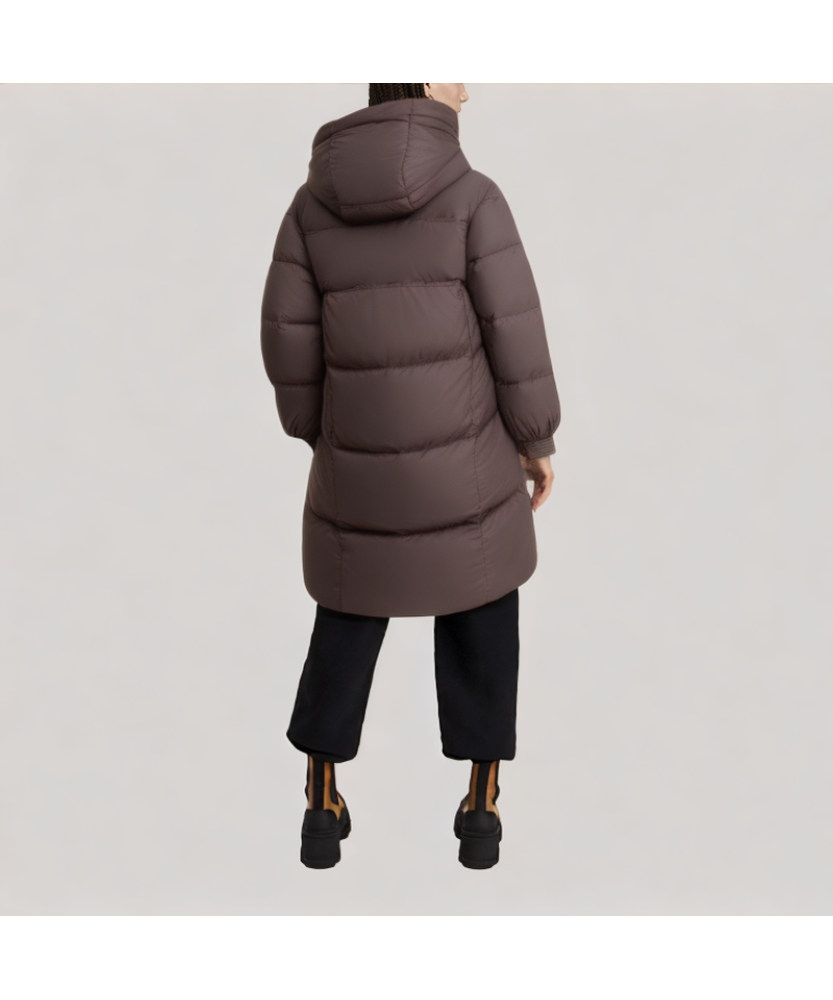 Quilted Design: The entire garment features a uniform quilted structure, securing the down and reducing cold spots. The quilted lines enhance the coat's structure, maintaining a balance between volume and fit in the long cut, combining aesthetics and functionality.