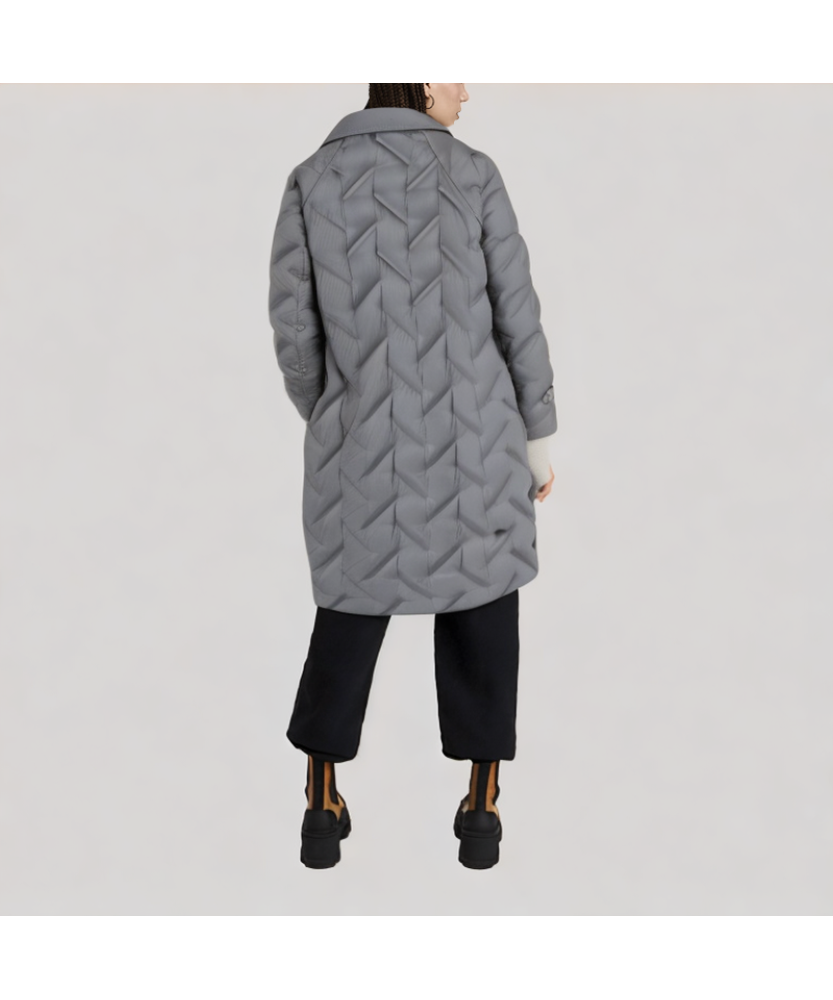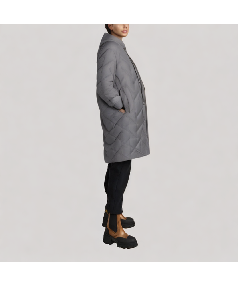 Quilted Design: Evenly distributed quilting throughout the garment securely holds the down, reducing cold spots. The quilted lines enhance the garment's three-dimensional shape, allowing the mid-length cut to maintain warmth while also creating a flattering silhouette, improving overall layering and aesthetics.