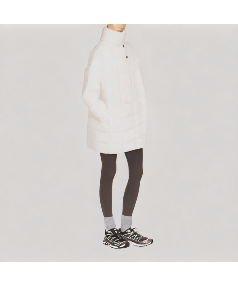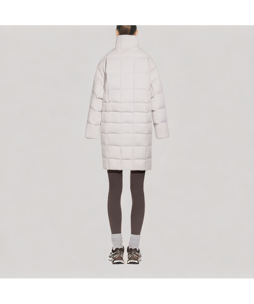 Quilted Design: The down jacket features a uniform quilted structure with fine and neat stitching, effectively securing the down filling and improving overall warmth. The quilted lines add depth and dimension to the garment, making the long silhouette more three-dimensional and visually clean and crisp. The solid color design paired with quilting presents a simple, versatile, and sophisticated winter style.
