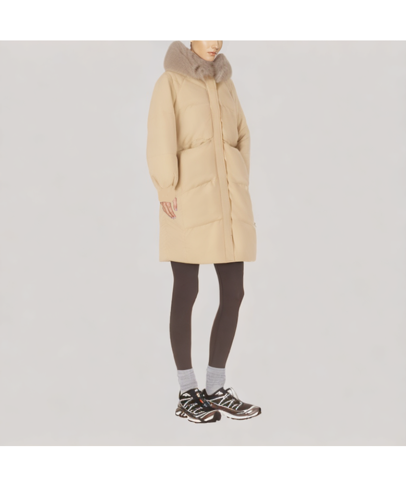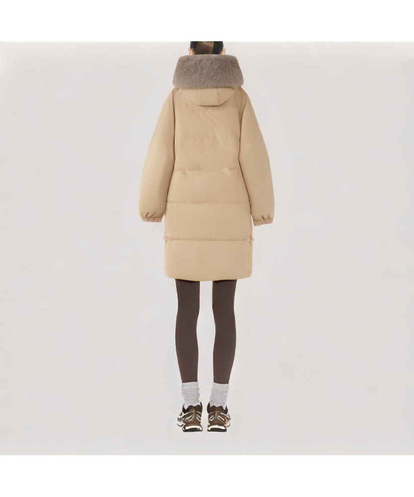 Large Fur Collar and Hood Design: The large fur collar is soft and thick, covering the neck and face to enhance warmth and add a touch of luxury and sophistication to the garment. The hood provides extra protection for the head, making it suitable for low temperatures and snowy weather. The combination of the large fur collar and hood creates a double layer of warmth, resulting in a stylish and sophisticated look while also being practical.