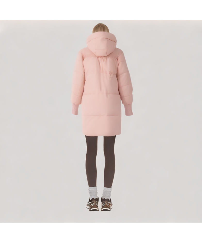 Pockets and Practical Details: The down jacket features two hand pockets, conveniently positioned for easy access to items while providing warmth and comfort for the hands. The zippers are smooth and durable, with neat and refined details. The quilted design not only secures the down filling and enhances warmth but also adds texture and dimension to the over-the-knee silhouette.