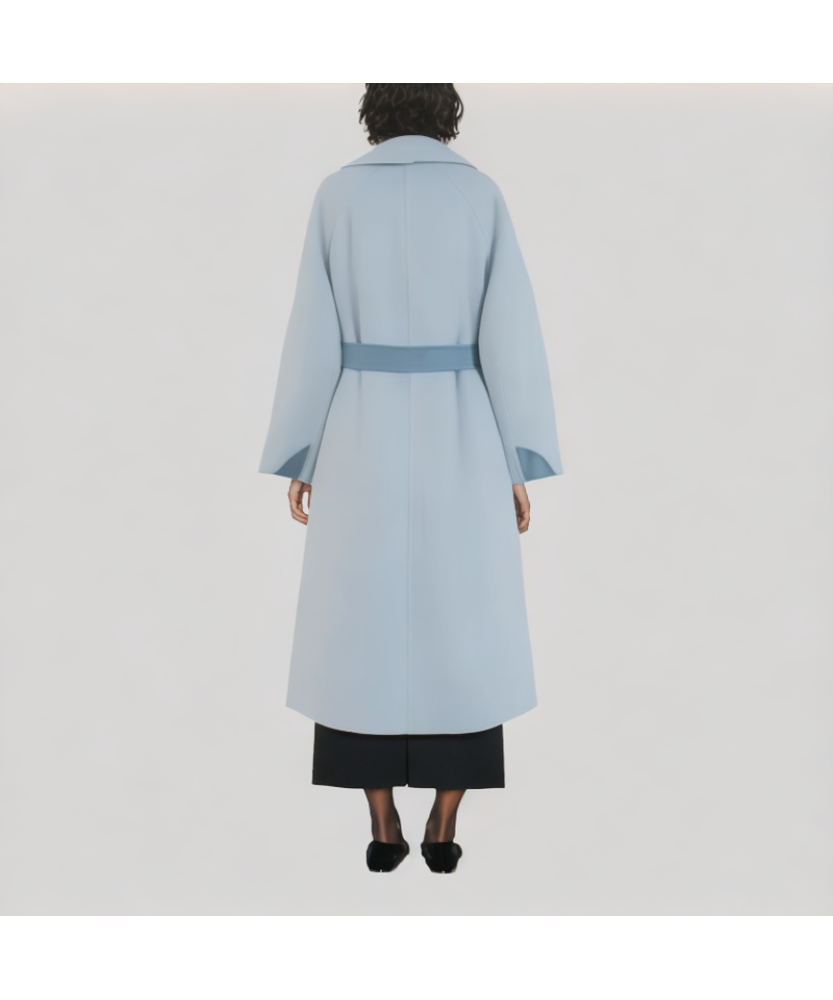 This double-layer wool coat embodies a minimalist and elegant design. The delicate slim belt defines a soft silhouette, highlighting feminine charm while ensuring a natural, comfortable fit. Crafted from sustainable cotton/polyester blended fabric, it is both eco-friendly and durable, providing lasting quality for everyday wear.