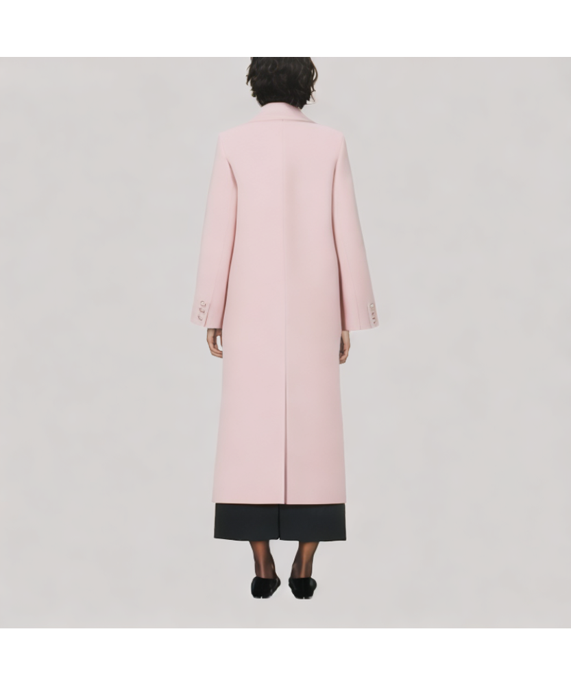 This pink cashmere coat is crafted from sustainable lambswool, combining eco-friendly practices with premium quality. Its soft and delicate texture provides a comfortable wearing experience while offering excellent warmth, keeping you cozy throughout colder seasons.
