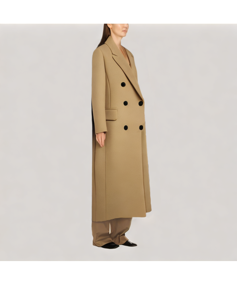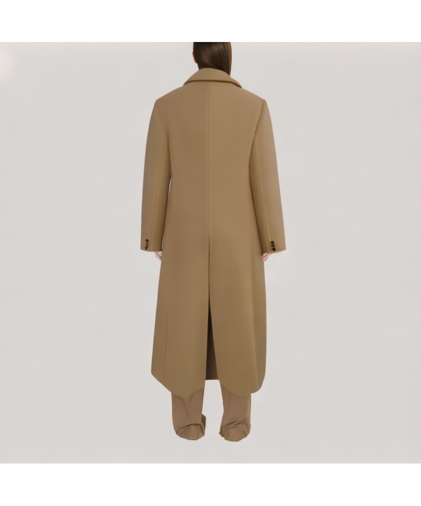 This loose tie-waist wool coat perfectly blends vintage elegance with modern sustainability. Made from a blend of sustainable wool and viscose, the fabric is soft to the touch, durable, and environmentally friendly.
