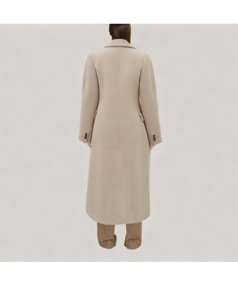 Crafted from a premium wool-blend material, it offers a soft touch and excellent warmth while embracing a sustainable fashion approach. The double-breasted design adds a timeless charm, and the tailored fit highlights the body silhouette, making it easy to pair with various outfits for everyday, work, or outdoor occasions.