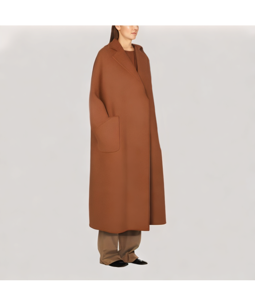 This reversible long wool coat is crafted from high-quality cashmere, offering a soft and delicate touch with excellent warmth and comfort. Its exquisite craftsmanship exudes a luxurious feel, making it perfect for both everyday wear and formal occasions, showcasing an elegant sense of style.